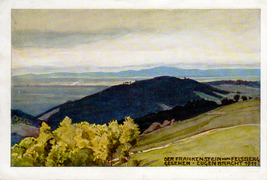 Eine der 3 farbigen Karten des Jugendstilmalers Eugen Bracht (1842-1921). "Der Frankenstein" |